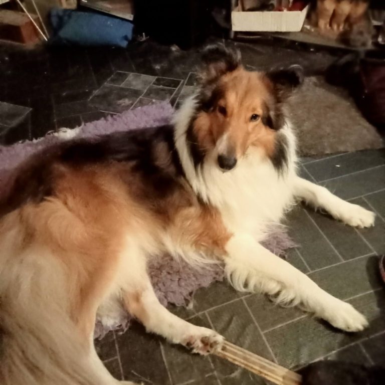 Mink is 5 years old and is a dark maghogney sable she is mostly a rough collie but with a much shorter coat.