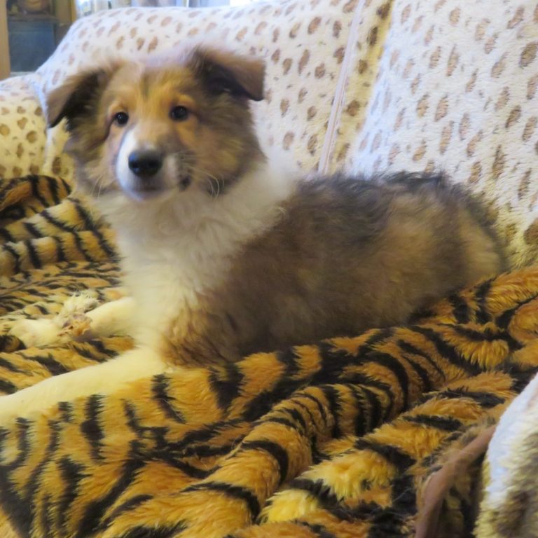 Yogi is my first home bred Tofty. He is quiet and is a serious dog,he thinks problems through he can solve puzzels. He has a wonderful character and nature. He is so friendly towards people and other animals. He is quiet and rarely barks. He loves his food and is so easy to train as he loves to please. I am training him to become my assistance dog. Yogi has a calm presence and as my first ever puppy tofty he has won me over to this breed. He does have a long tail and his coat is much easier to groom as its not as profuse as a rough. His mum is impulse and he has many of her traits.